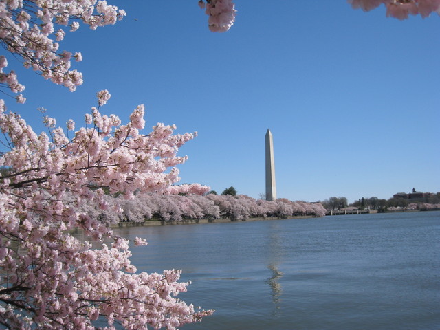 在DC沿著某個湖的湖畔種了一圈的櫻花樹。