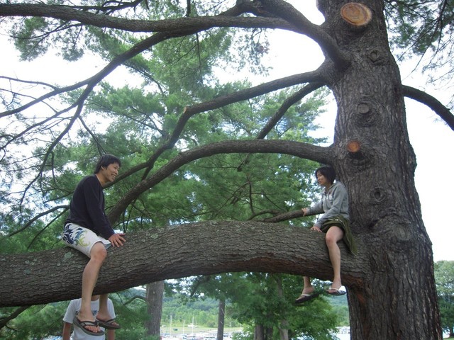 溪邊有垂下來的樹枝,都直接往樹撞上去。