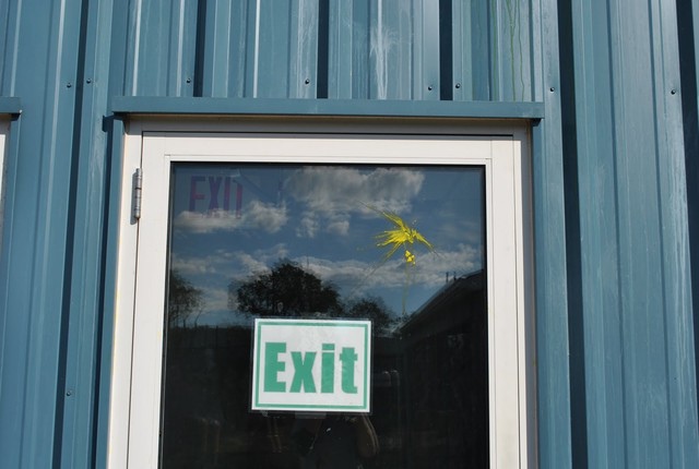 雖然有網子把場地圍起來,流彈還是打到了門上。